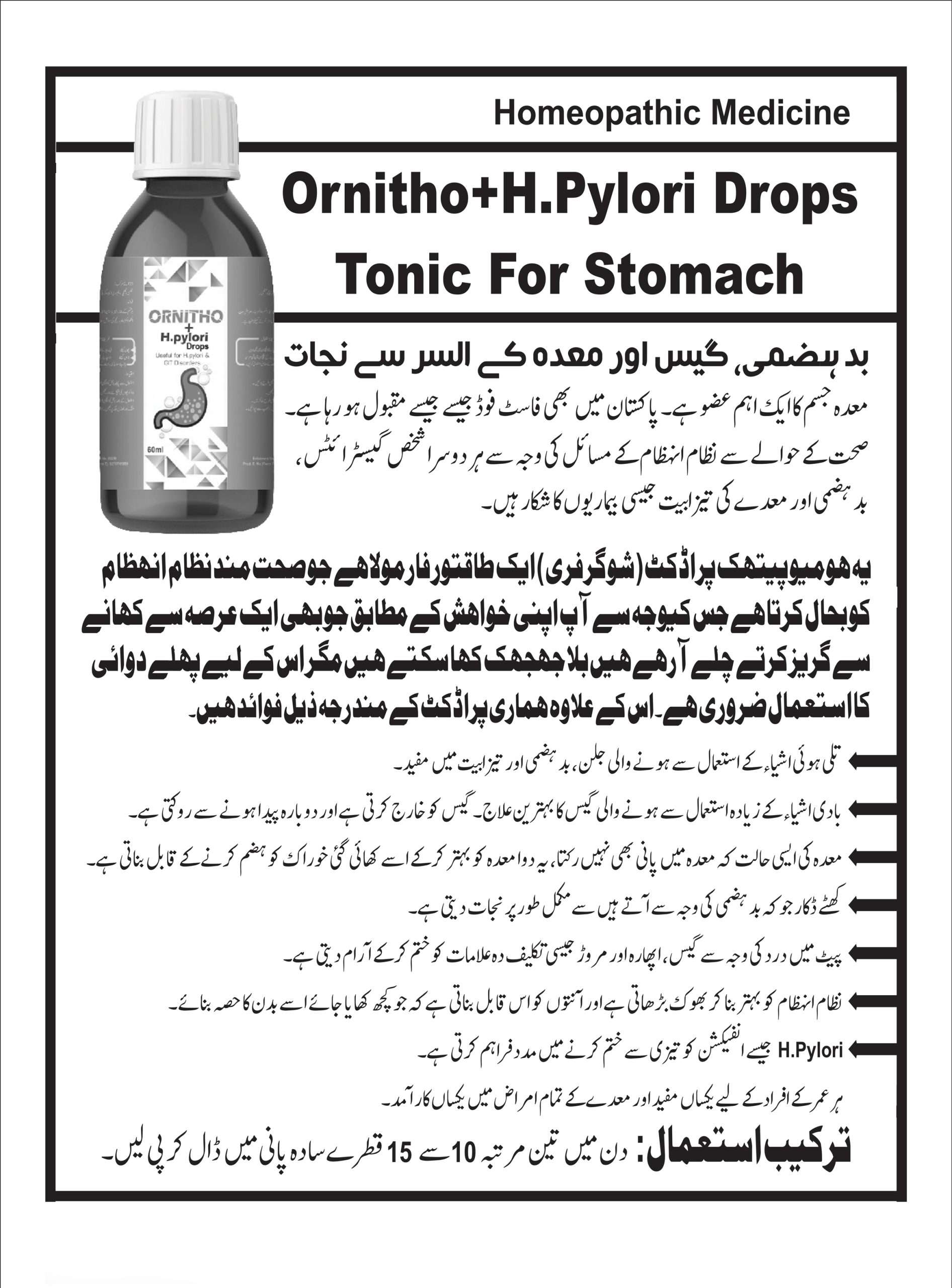 Ornitho + H.Pylori Drops for Stomach (Indigestion, Heart Burn, Flatulence and Gastritis)